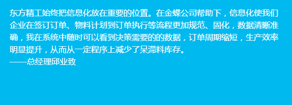 2010年,為滿足企業服務營銷轉型,東方精工在前期金蝶實施的財務業務一體化平臺上,擴充了客戶關系管理(CRM),將設計生產的每一個產品配件、潛在客戶與最終用戶等信息納入到新建的CRM系統中。
